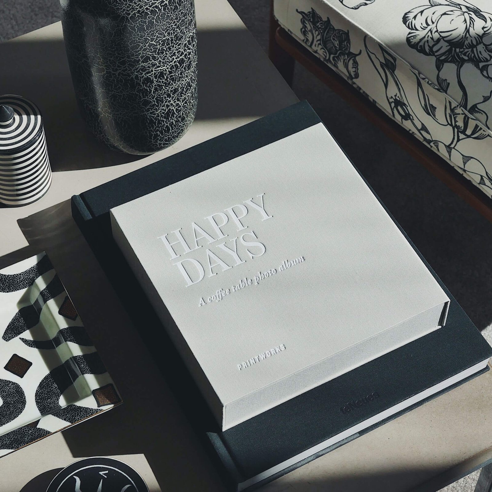 L’album photo Happy Days est un véritable bijou à la fois compact et élégant. Fermé, il ressemble à un beau livre, parfait pour sublimer votre table basse ou votre étagère. Ouvert, il dévoile 30 pages de papier photo noir de haute qualité, idéales pour vos photos au format 10×15 cm avec espace pour vos légendes personnelles. Besoin de plus de place ? Ajoutez facilement des pages supplémentaires jusqu’à un maximum de 40 pages. Ce format compact est parfait pour être empilé sur un album plus grand, créant ainsi un ensemble harmonieux et pratique pour vos souvenirs les plus précieux.