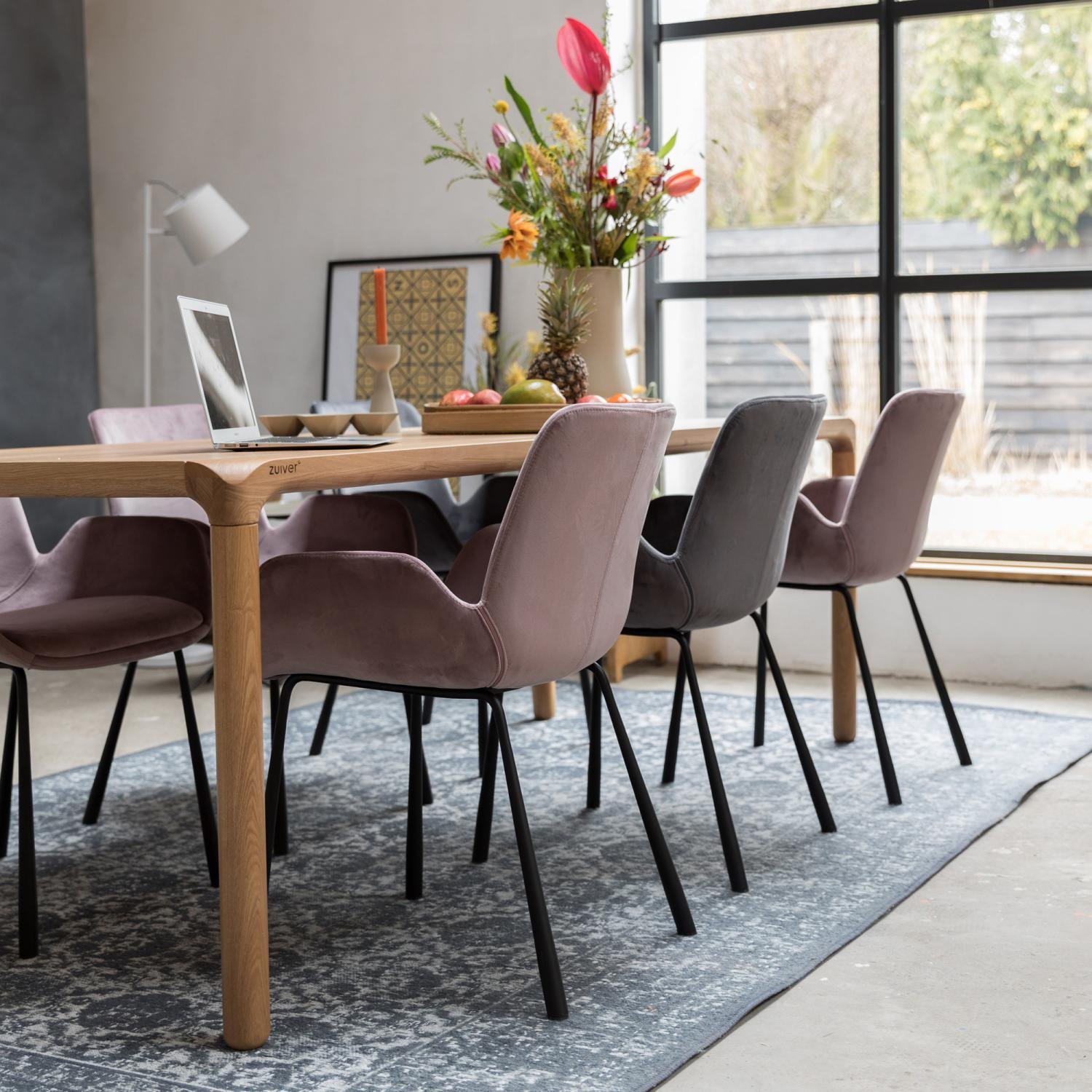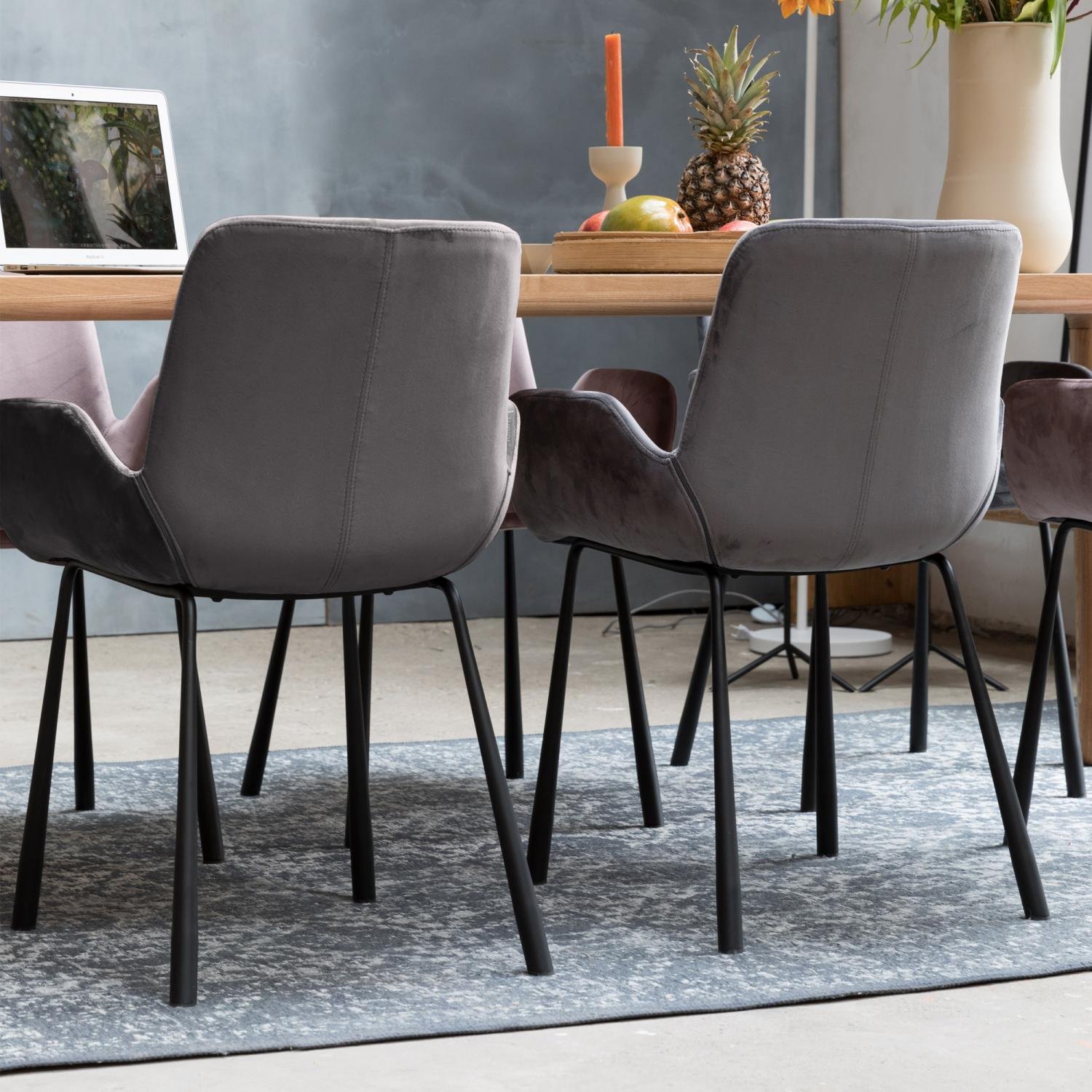 L’assise en velours gris foncé procure une sensation de douceur et de confort, idéale pour de longues heures d’assise. Que ce soit dans un salon, une salle à manger ou un bureau, cette chaise saura trouver sa place et sublimer votre décoration. Les pieds en acier noir effilé ajoutent non seulement une stabilité robuste, mais aussi une touche de style industriel qui s’intègre parfaitement dans des décors contemporains ou plus classiques.