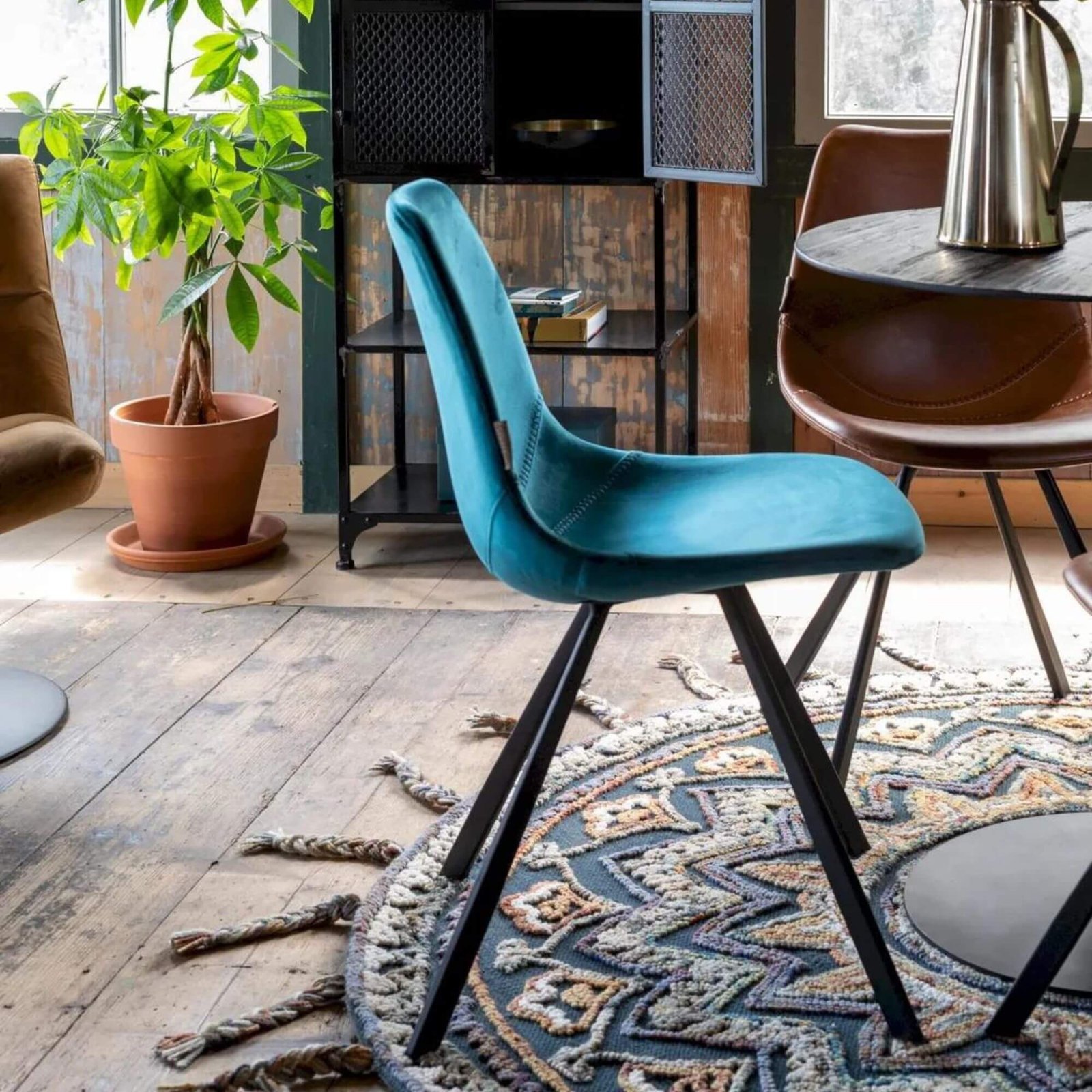 Chaise Franky Velours – Bleu petrol