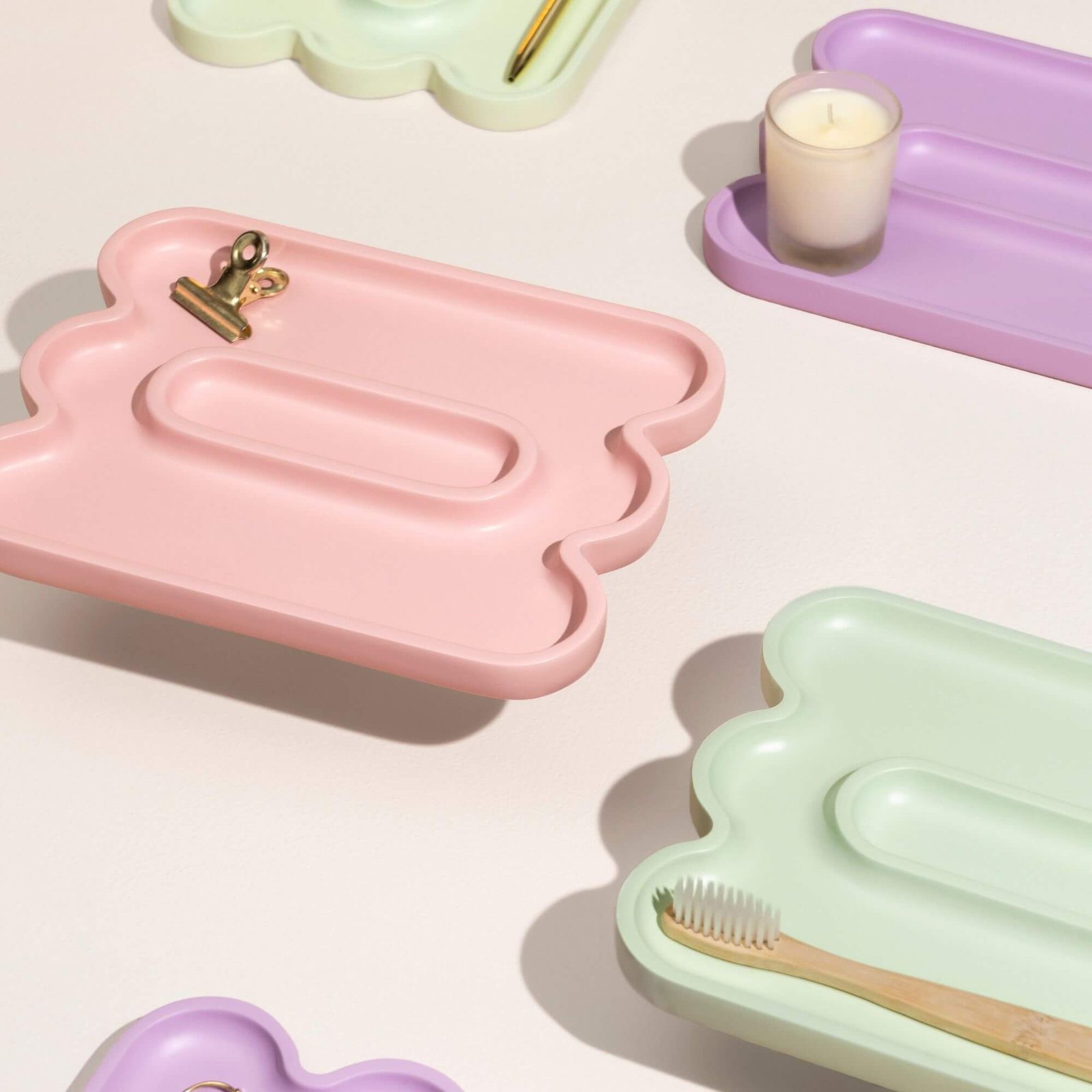 Lorsque vous en mettez plusieurs ensemble, ils forment un chapelet d’îles colorées. De taille parfaite et doté d’un léger rebord, ce vide-poche est idéal pour ranger les petits gadgets, les cosmétiques ou les ustensiles de bureau.