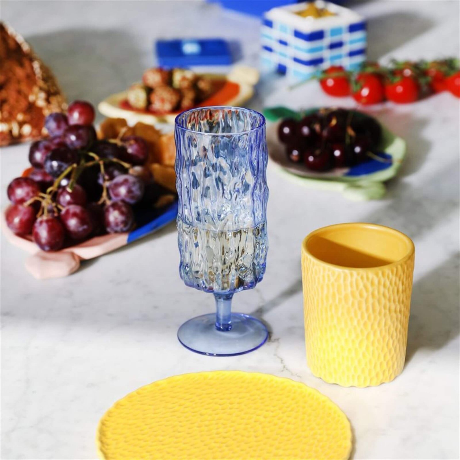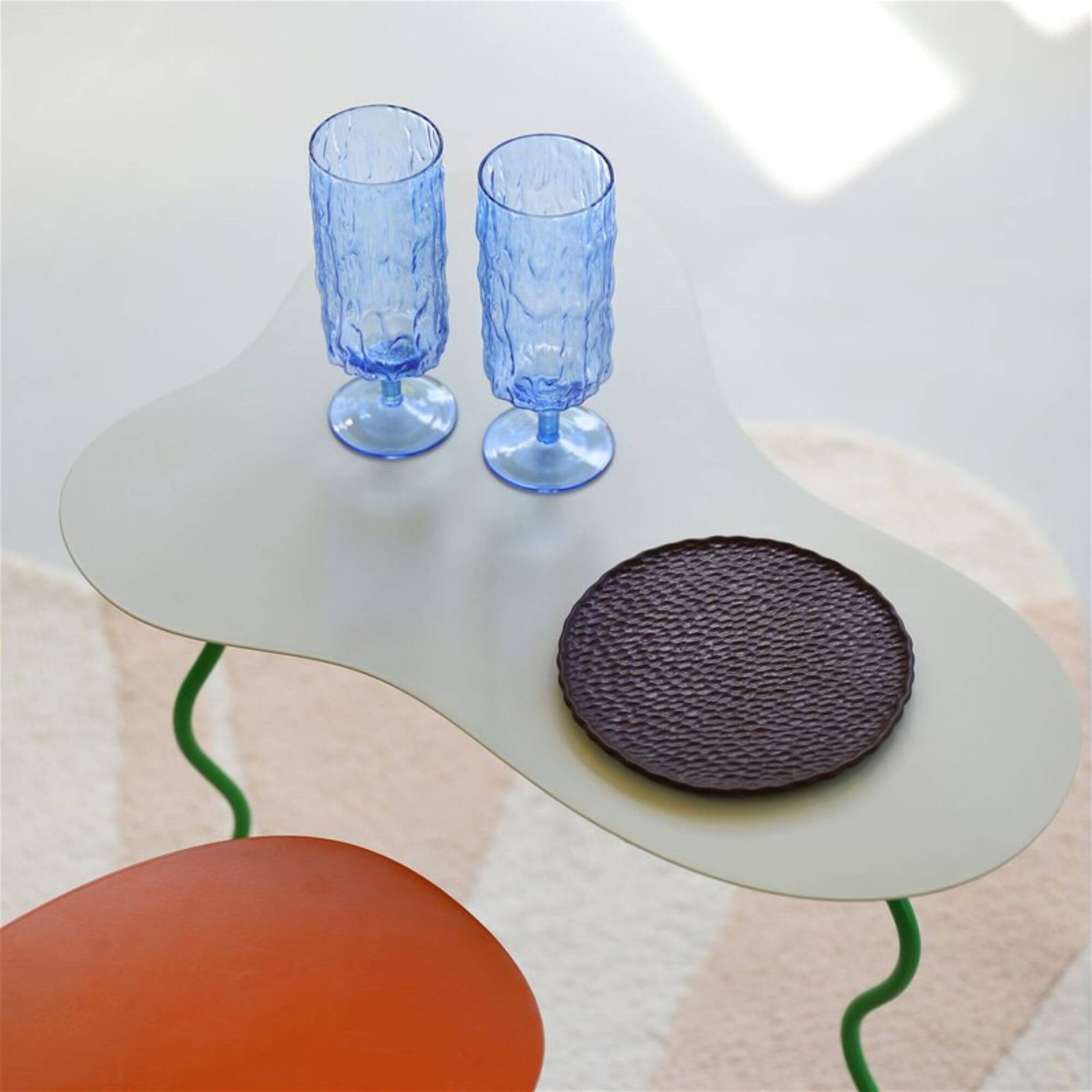 Ces sublimes flûtes à champagne se caractérisent par des formes fluides et une surface bosselée. Les lignes organiques et irrégulières communiquent une idée artisanale et mettent en valeur l’esthétique authentique de cette création.