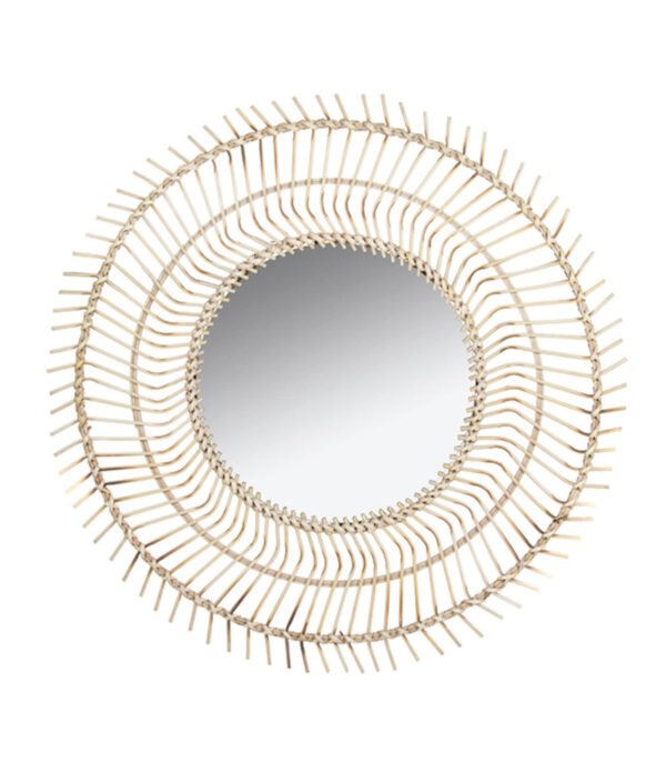 Apportez une touche de nature à votre intérieur avec ce magnifique miroir fabriqué à la main en bambou. Ce miroir rond est entouré de rotin, lui donnant un look naturel avec une belle finition écologique. Un miroir parfait qui apportera sa touche nature dans l’entrée, à un salon ou une chambre.