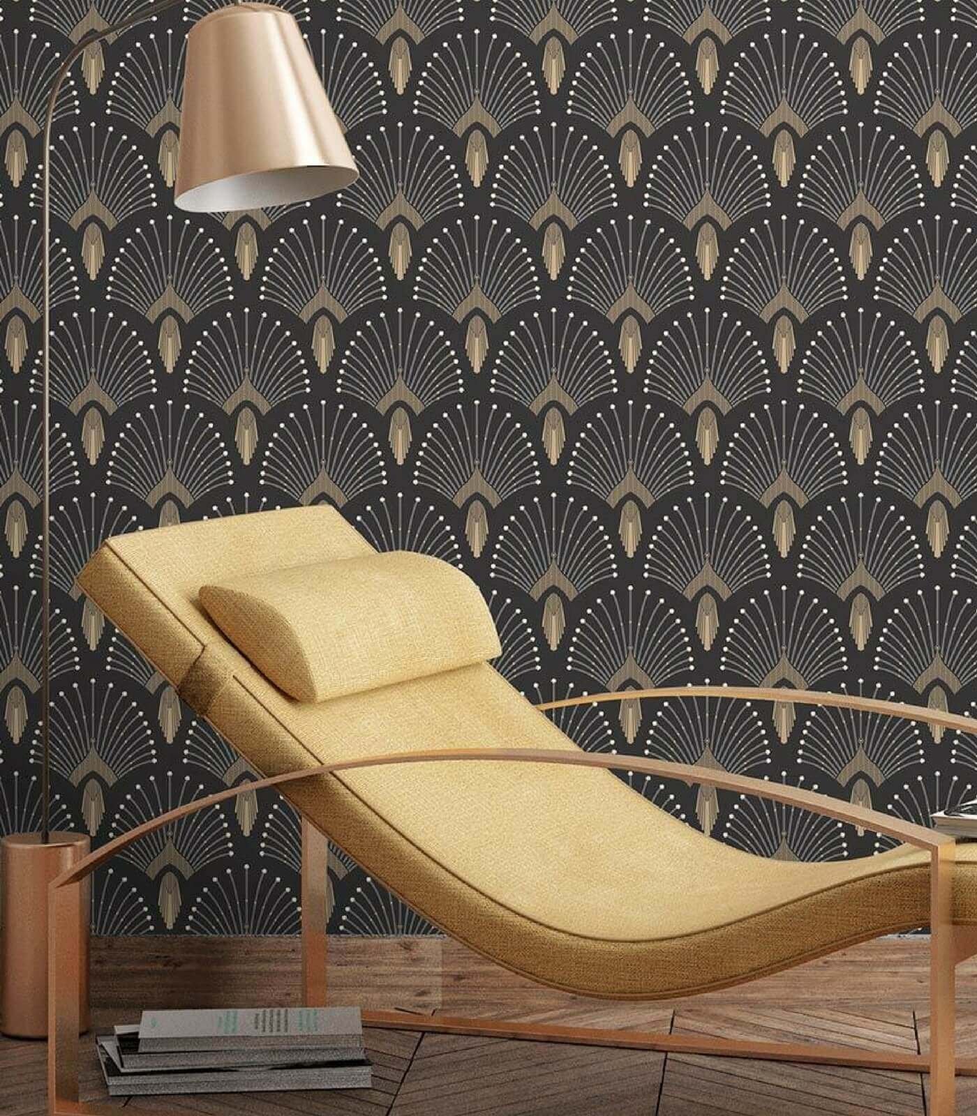 Apportez une ambiance art déco à votre intérieur avec le magnifique papier-peint 1925. Ce revêtement a la particularité d’avoir certains détails d’un motif doré et brillant. Plus que jamais tendance, il s’adapte parfaitement aux couloirs, aux chambres et aux séjours.