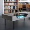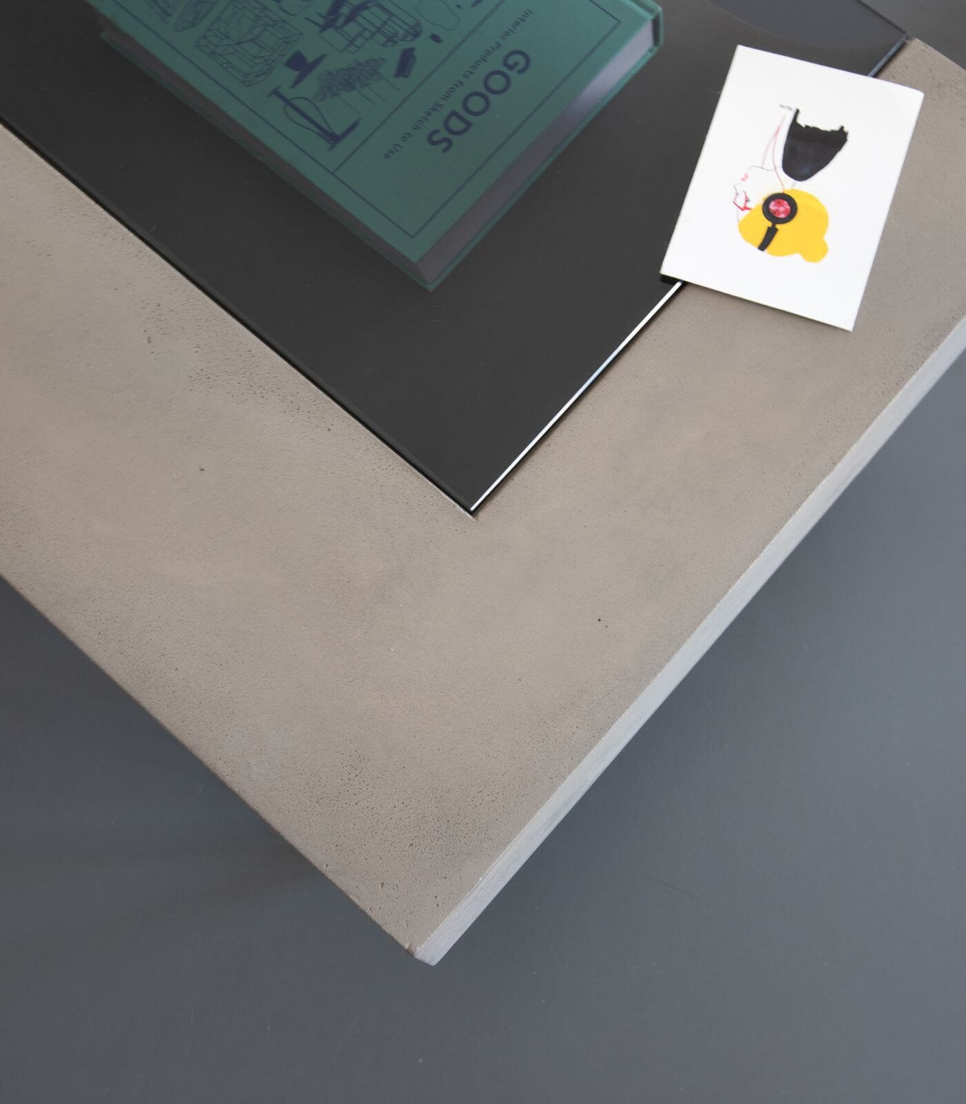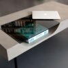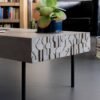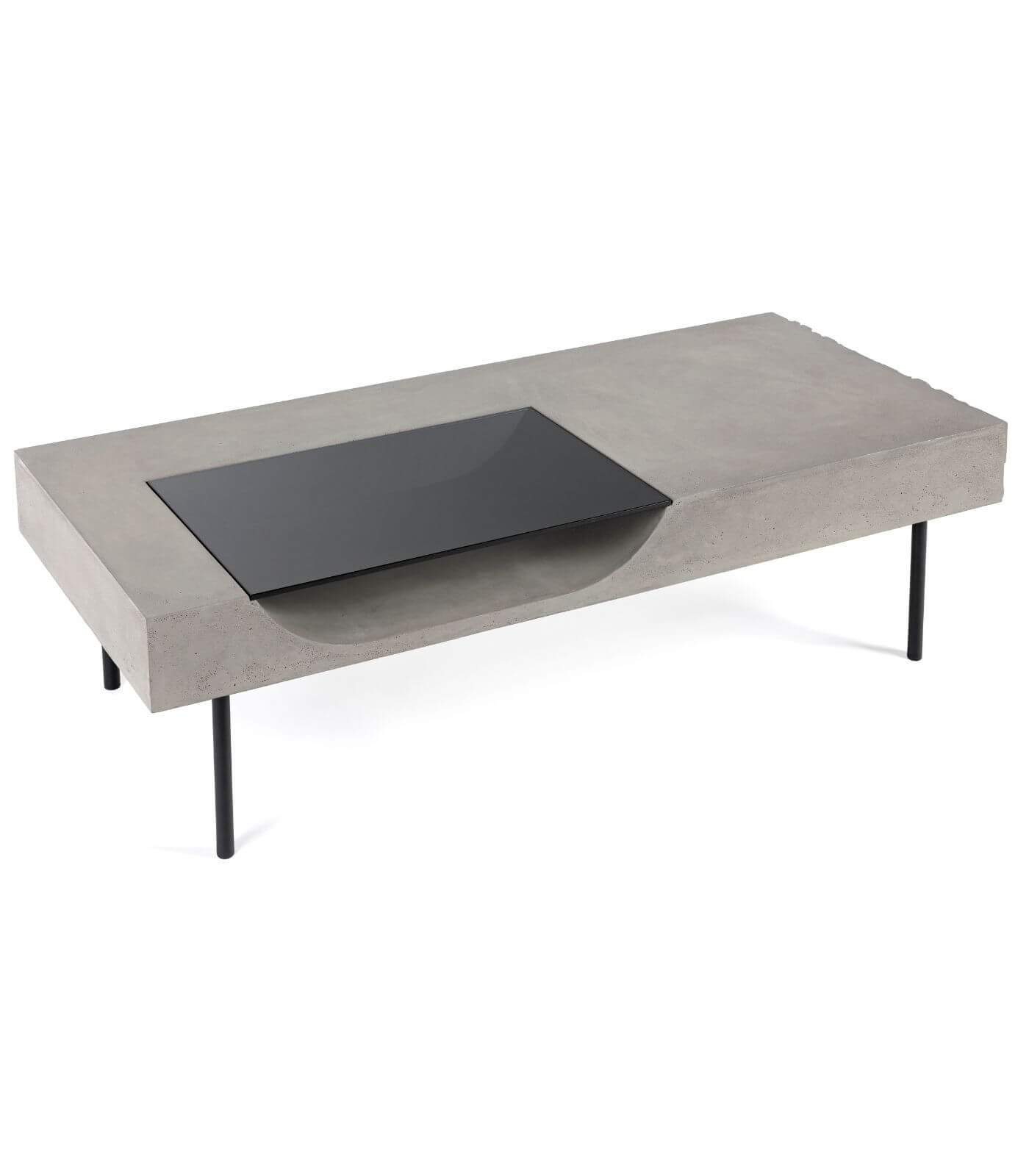 Plateau béton avec armature en acier, peinture epoxy plateau amovible en verre trempé, conçu pour un usage uniquement intérieur