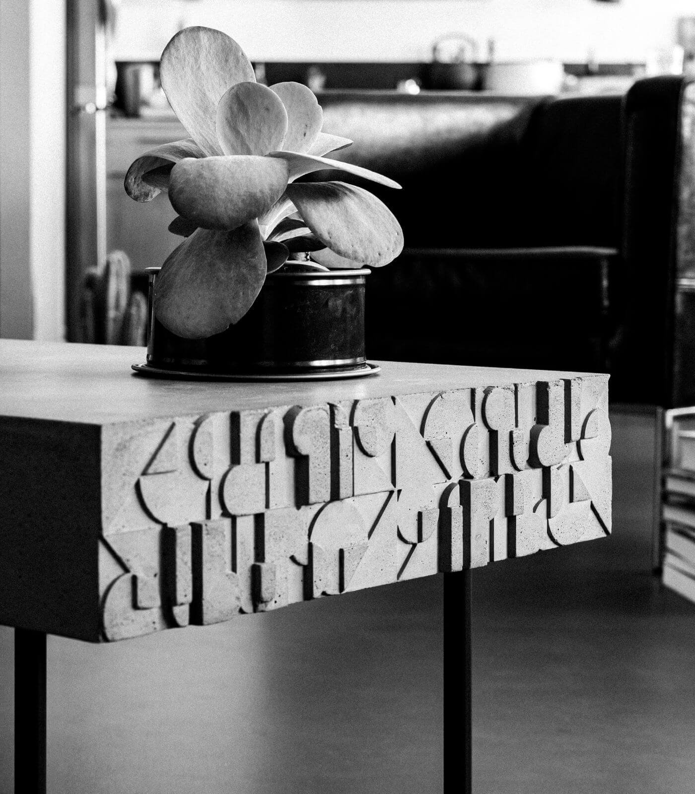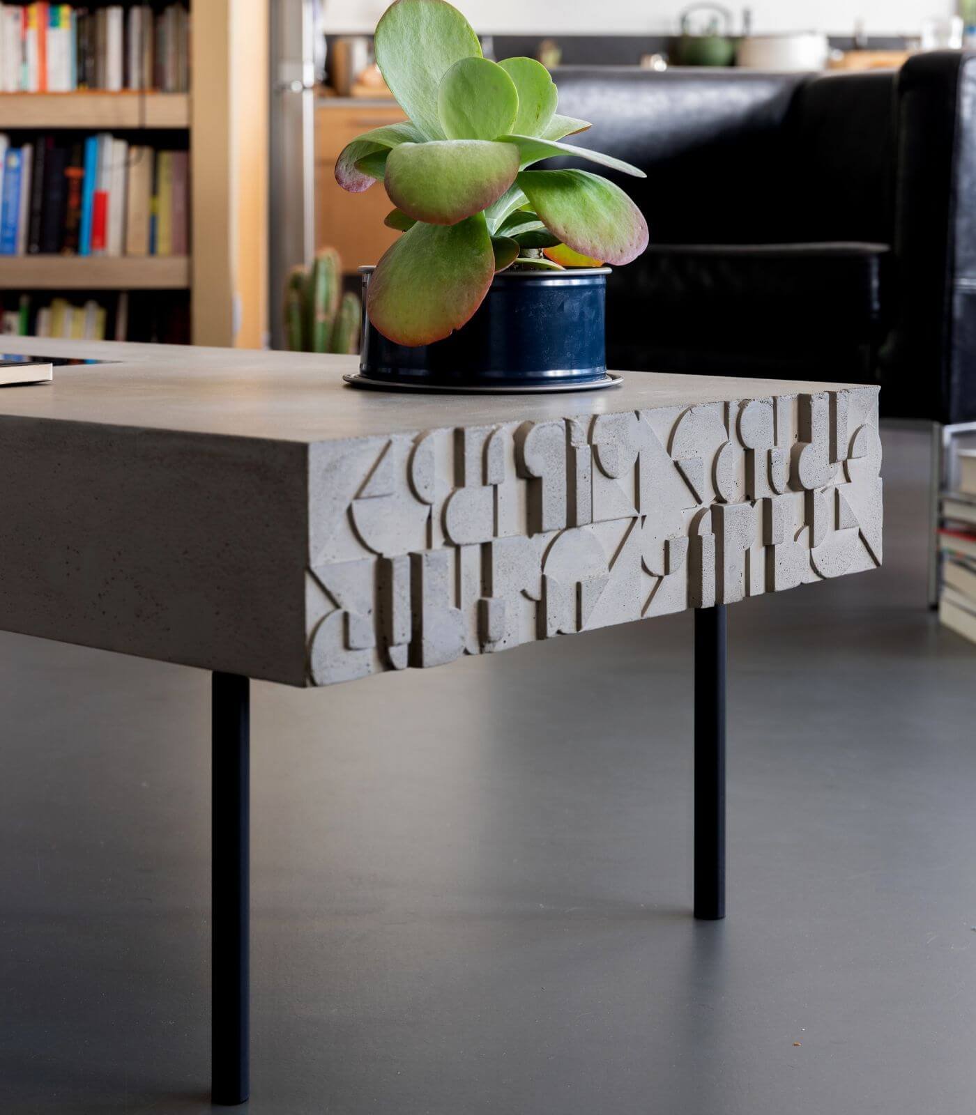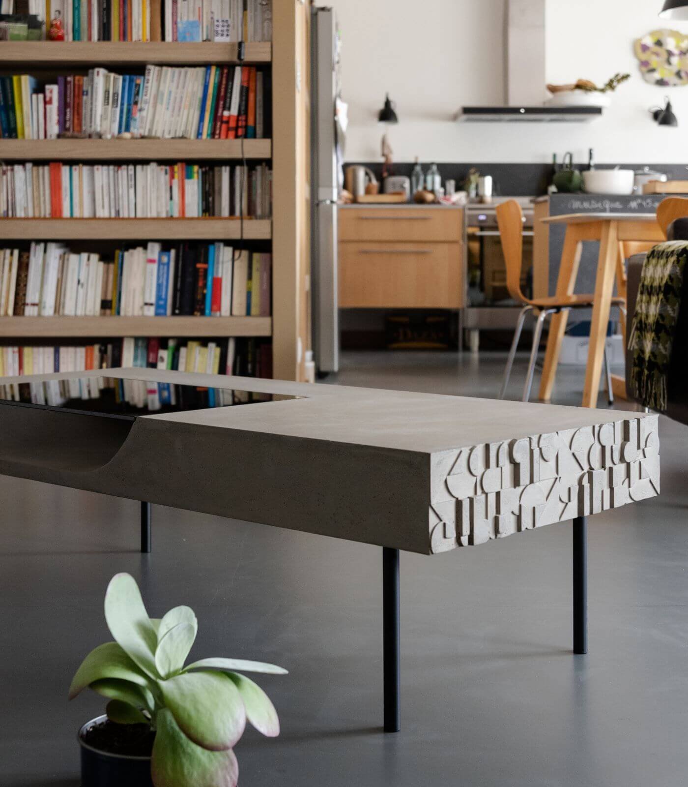 Découvrez la Table basse Curb de Lyon Béton, une pièce unique qui marie avec élégance le béton et le design contemporain. Conçue avec une légèreté surprenante, cette table basse se distingue par ses pieds effilés et sa joue subtilement ornée de motifs art déco, offrant ainsi un mélange complexe et harmonieux de plusieurs époques et styles.