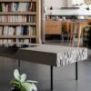 La Table basse Curb est un véritable hommage à l’histoire du design, combinant des éléments inspirés des mouvements artistiques du vingtième siècle avec une esthétique contemporaine. Son bas-relief rappelle les détails travaillés des bâtiments art déco, tandis que son motif s’inspire des formes et proportions de l’école du BAUHAUS. La niche surmontée d’un verre fumé évoque quant à elle le style des années 70, ajoutant une touche rétro à cette pièce moderne.