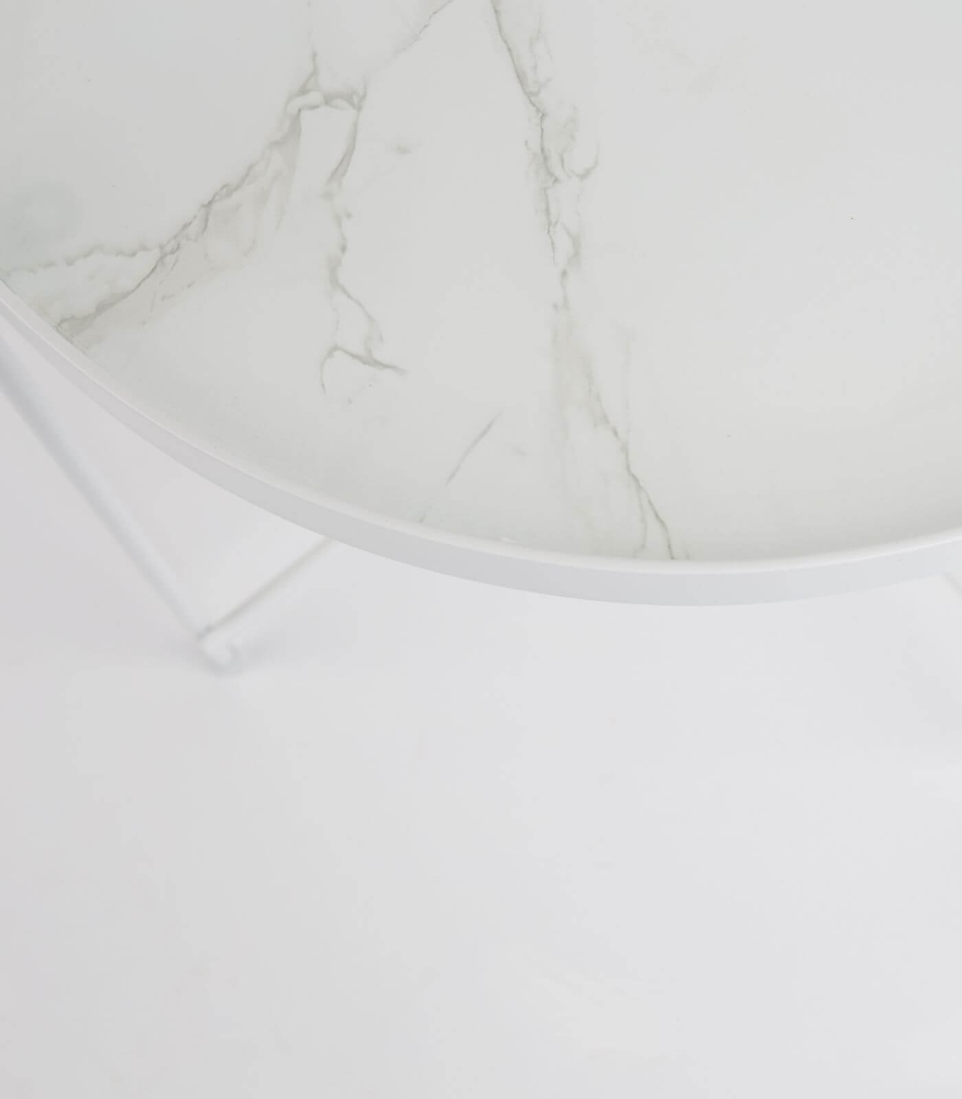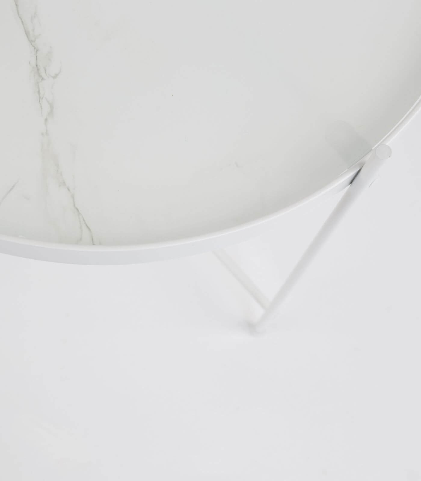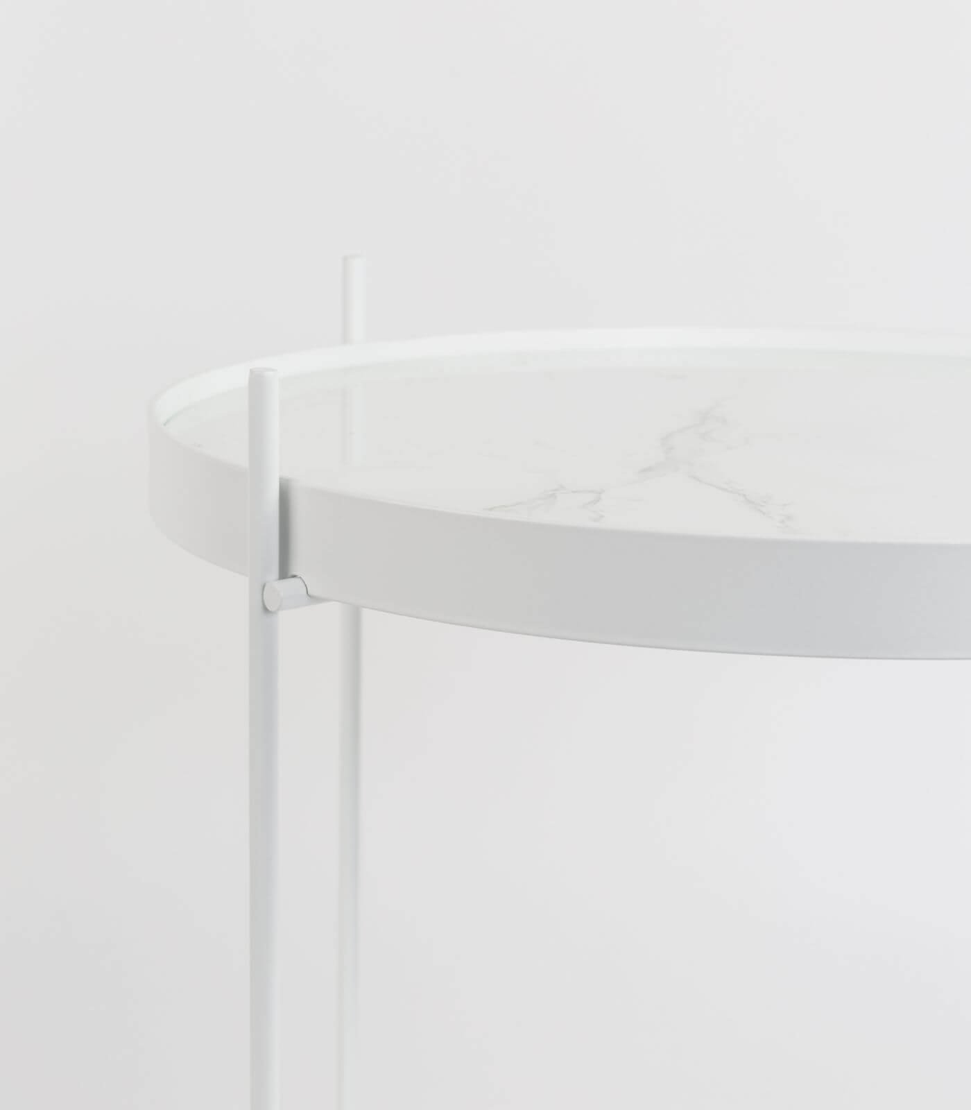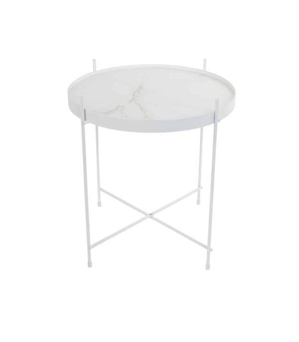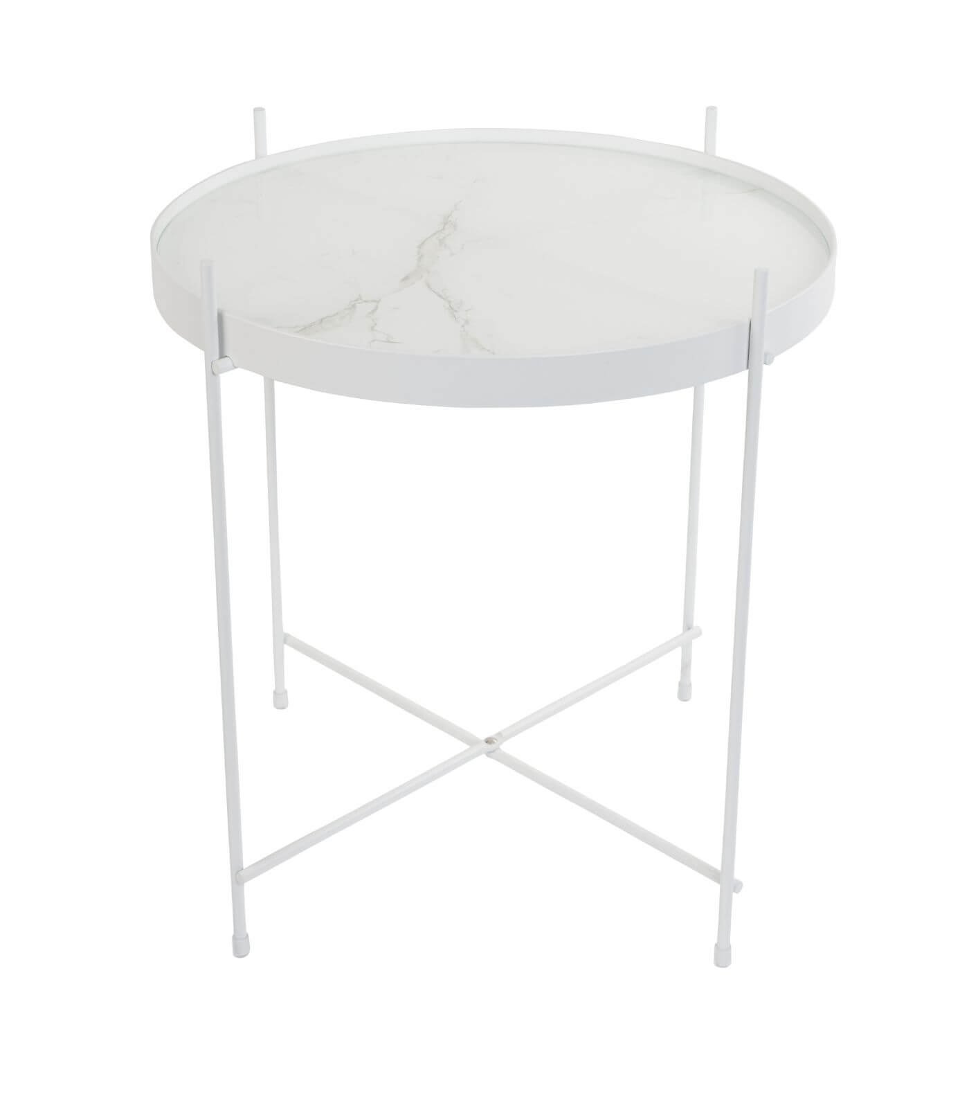 – Plateau amovible effet marbre/verre feuilleté- Structure pliable en métal blanc- Charge maxi 5 kg