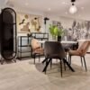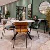 La table à manger a un cadre en acier noir avec 4 pieds, qui dépassent du