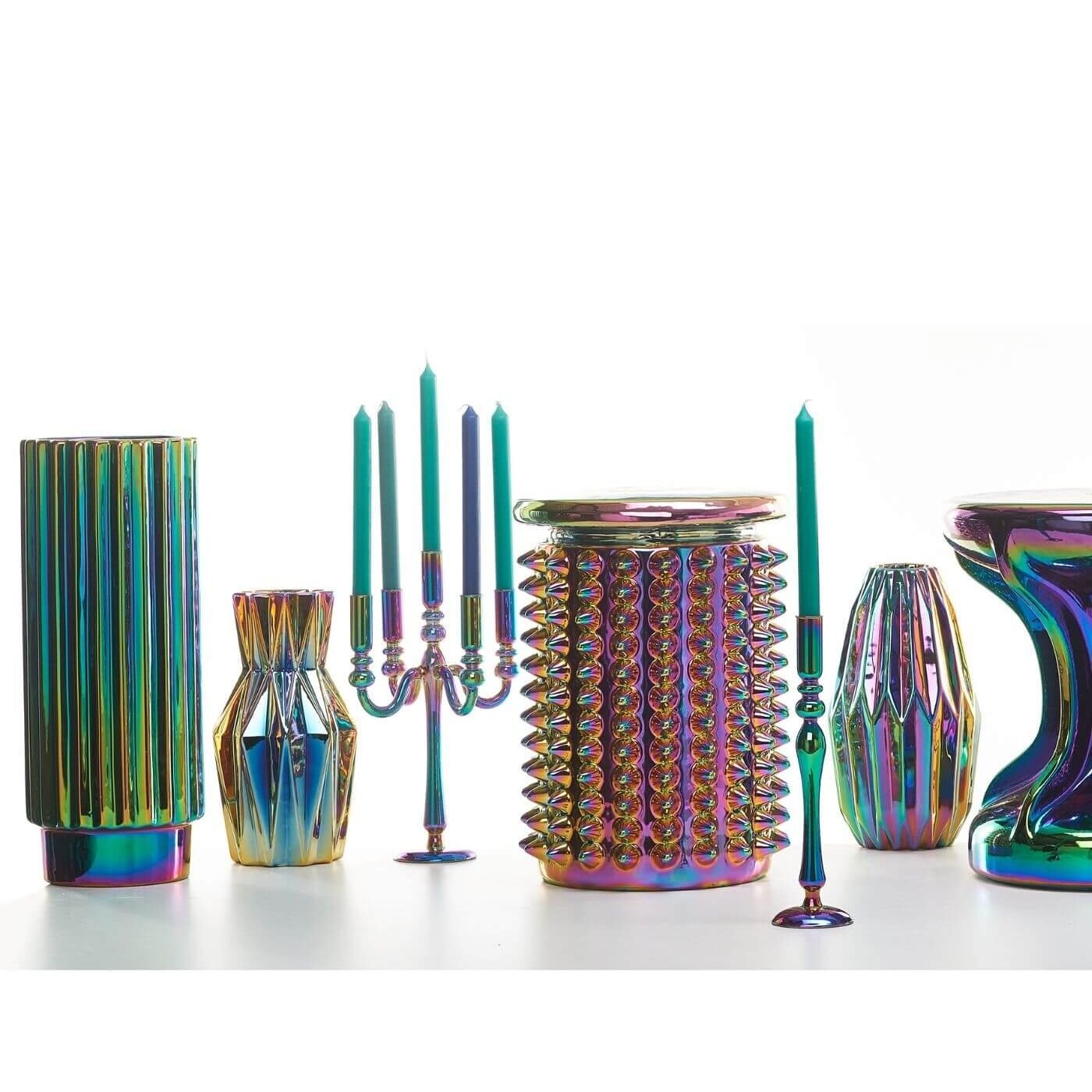 Faites sensation dans votre intérieur avec ce sublime Vase signé de Pols Potten. Doté d’une forme géométrique merveilleusement unique, il est orné d’une superbe finition irisée qui reflète magnifiquement différentes couleurs en fonction de la lumière. Un ajout décoratif comme fonctionnel parfait à toute maison élégante. Associez-le à des accessoires de maison complémentaires de Pols Potten pour coordonner élégamment votre espace.